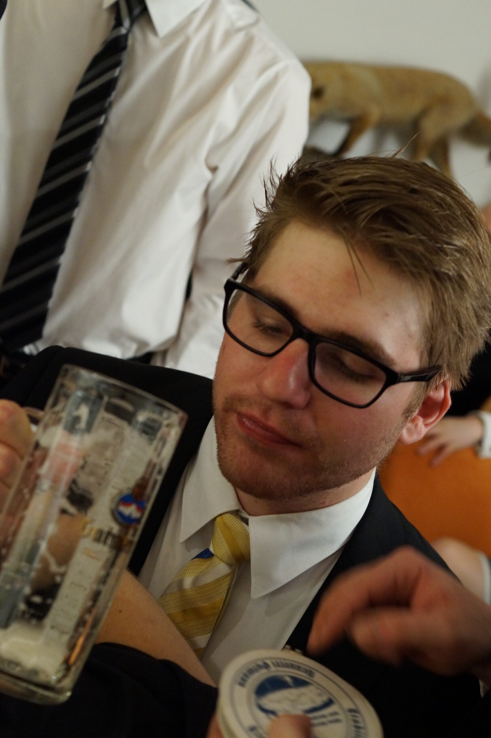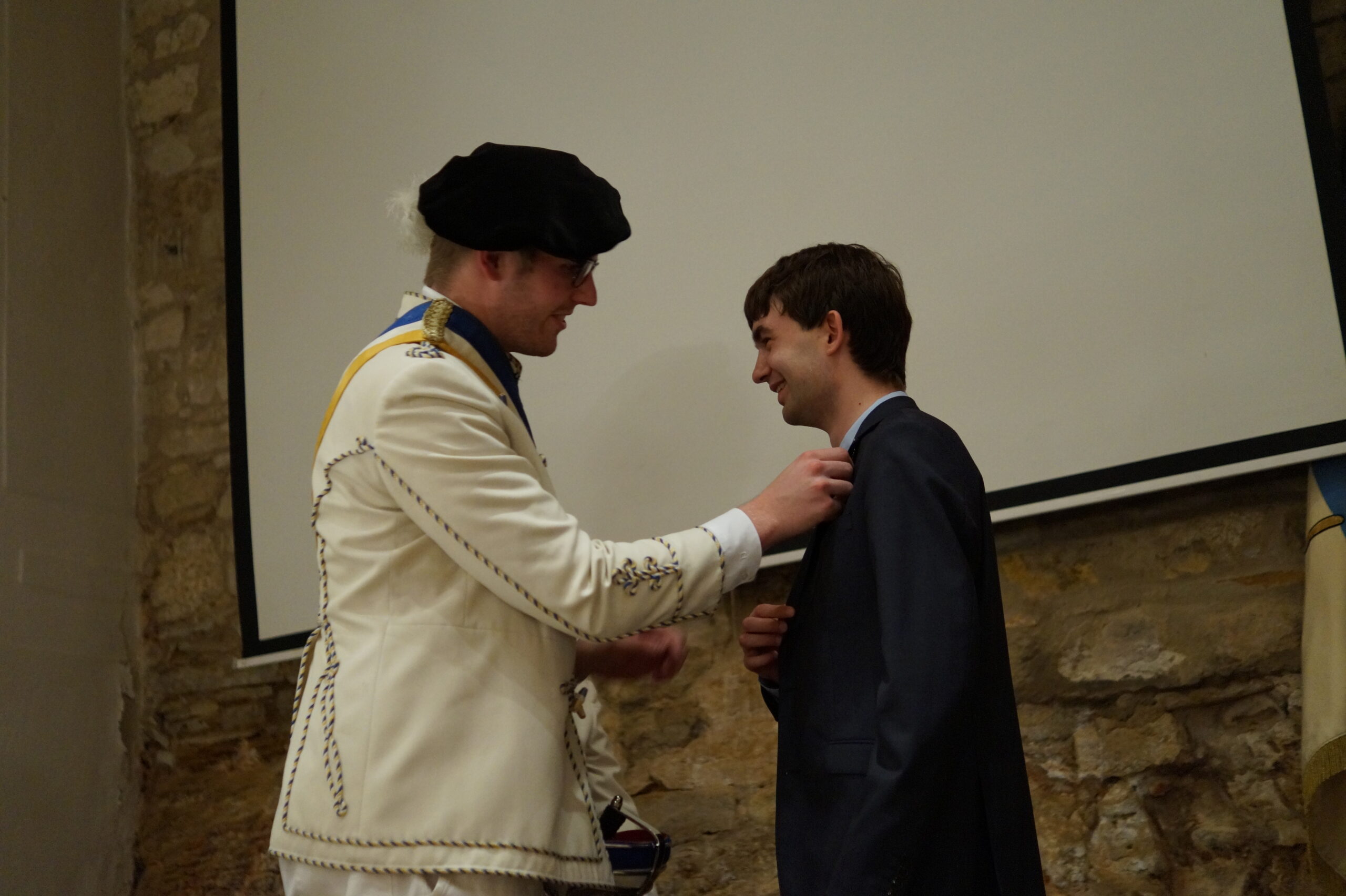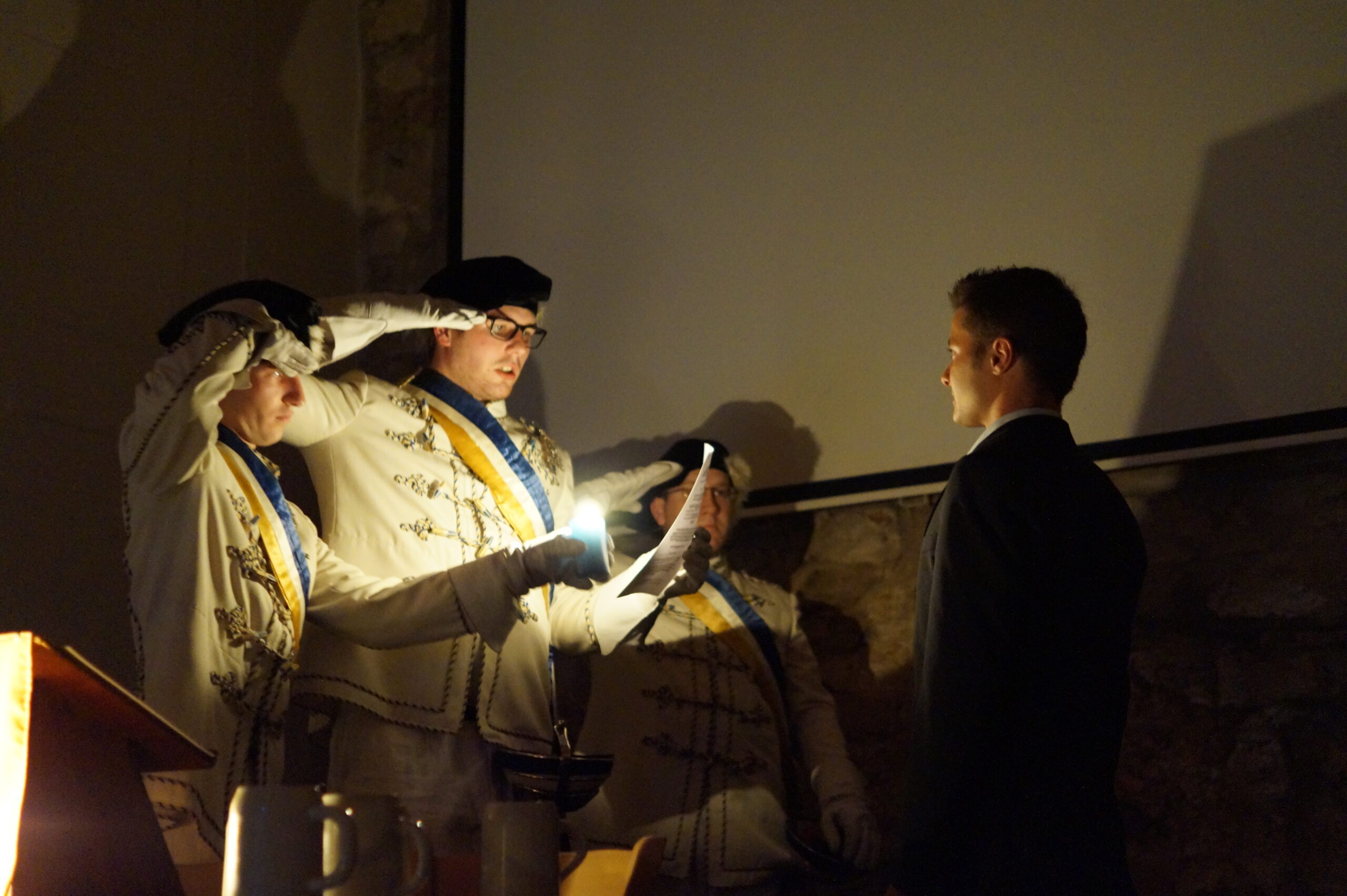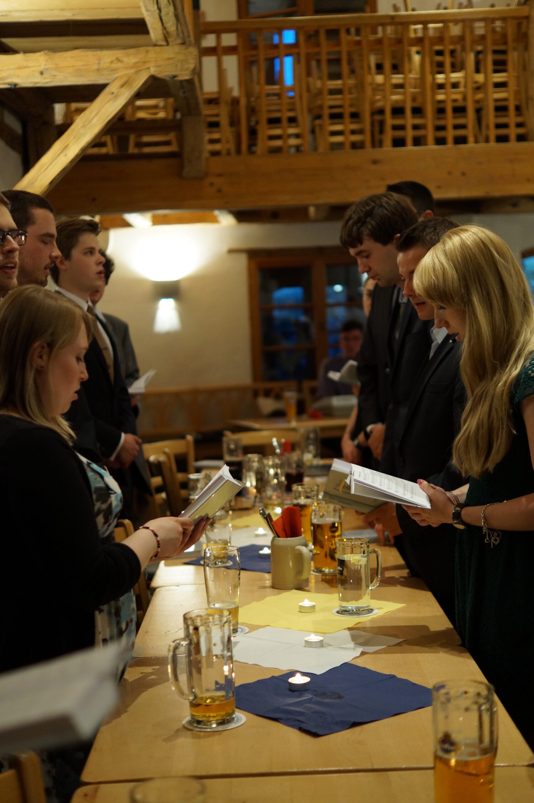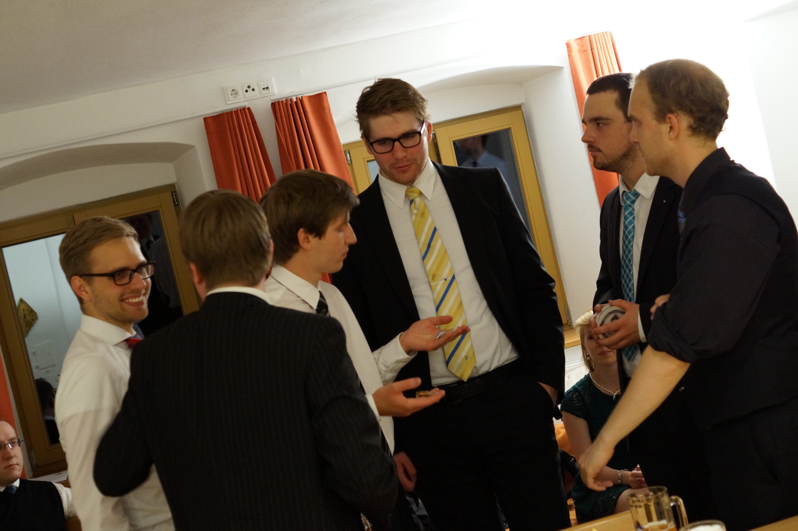 In der anschließenden Diskussion konnten noch Sorgen und Fragen bezüglich der brisanten, beinahe zeitlosen Problematik vom Plenum vorgetragen werden, bevor die hochoffizielle Festkneipe unter der Leitung des hohen Seniors und seiner Conchargen eröffnet wurde. In der Prinzipienrede monierte Bbr. Matthias J.R. Stüeken die Gefahr der Abflachung unitarischen Engagements und rief das Lebensbundprinzip in Erinnerung. Beispielhaft für die Entscheidung das ganze Leben ein treuer und dienender Unitarier zu sein wie zu werden, ist die Burschung unseres Quästors Bbr. Michael Holaschke, der ab jetzt den Weg als Vollmitglied der Aktivitas geht. Jene wiederum erhielt auch Verstärkung: Bbr. Christoph Schiebel und Bbr. Marcel Sahlmen wurden im Anschluss an die Burschung in den Fuxenstall aufgenommen. Somit hat die Frankonia die 20er-Marke erreicht, was die Anzahl an Aktiven angeht!