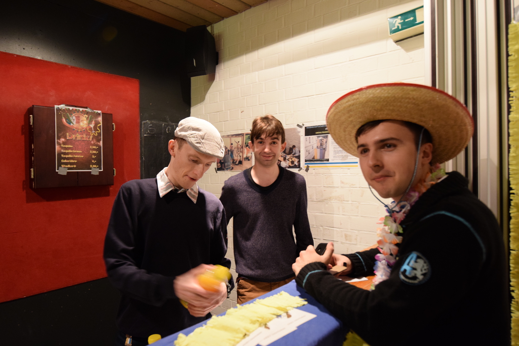 An einem Tag manifestierten sich gleich alle drei unitarischen Prinzipien – Virtus, Scientia und Amicitia, wonach wir unser Denken und Handeln ausrichten. Immerwährend sind sie für uns Wegweiser im Leben. Feuer und Flamme loderten am Dienstag, 17. Nov. 2015 im Studententreff „Theke“ ab 21:00 Uhr. Die erfrischenden Cocktails und Longdrinks kühlten die vom mexikanischen Lebensgefühl erhitzten „Motoren“ der Barkeeper und Partygäste ab, während würzige Snacks an den kulinarischen Hauch Mexikos erinnerten. Die Dekoration wurde nicht nur auf die Farben Grün-Weiß-Rot reduziert, sondern auch die Farbgebung der Bar-Abdeckung und die Servietten dienten als Hommage an die kraftvollen unitarischen Farben Blau-Weiß-Gold.