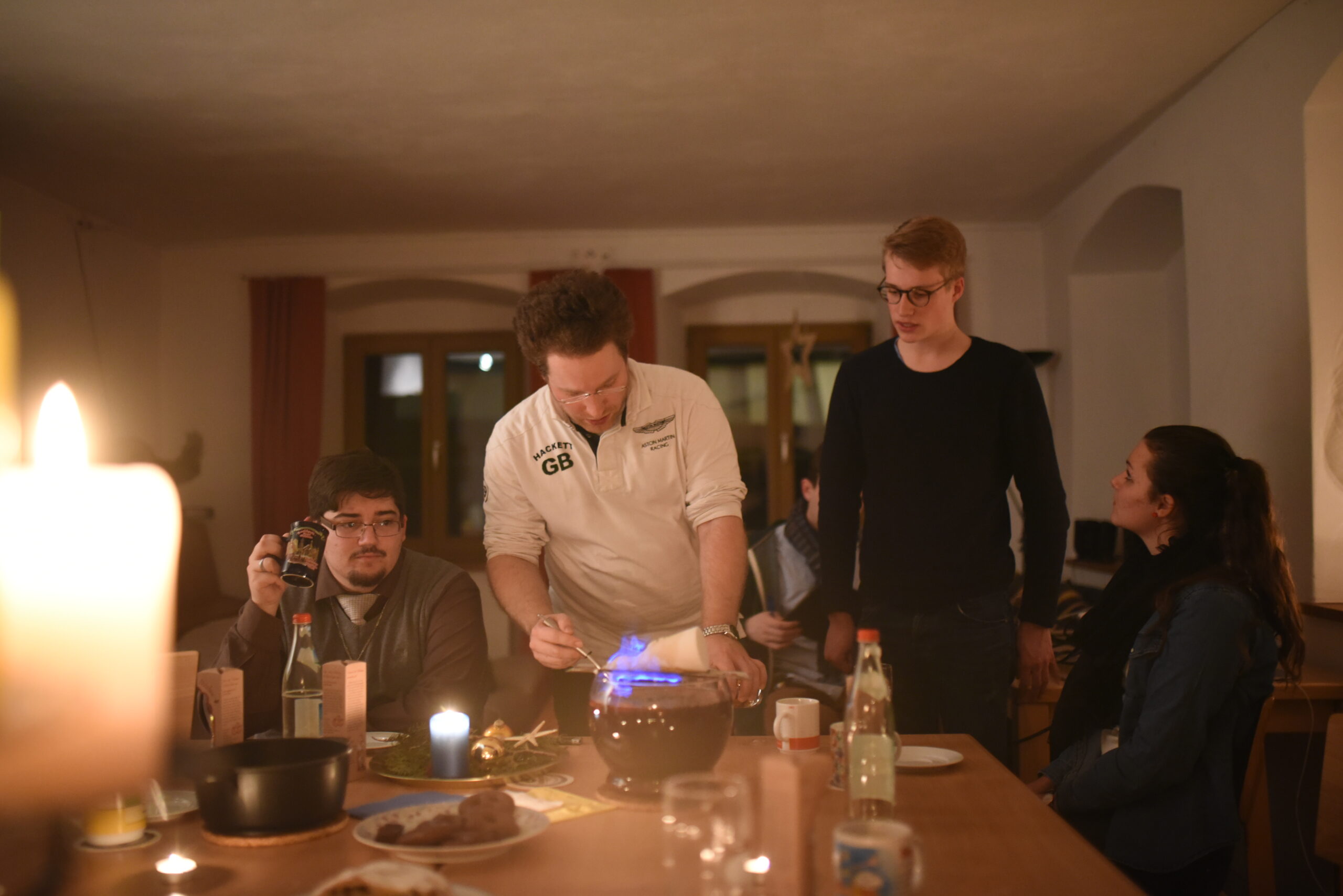 Im Anschluss an den Besuch des Hl. Bischof Nikolaus’ bereiteten wir köstliche Feuerzangenbowle zu, der Showeffekt des brennenden Zuckerhutes ist nicht zu verachten, wie man anhand der Bilder unschwer erkennen kann!