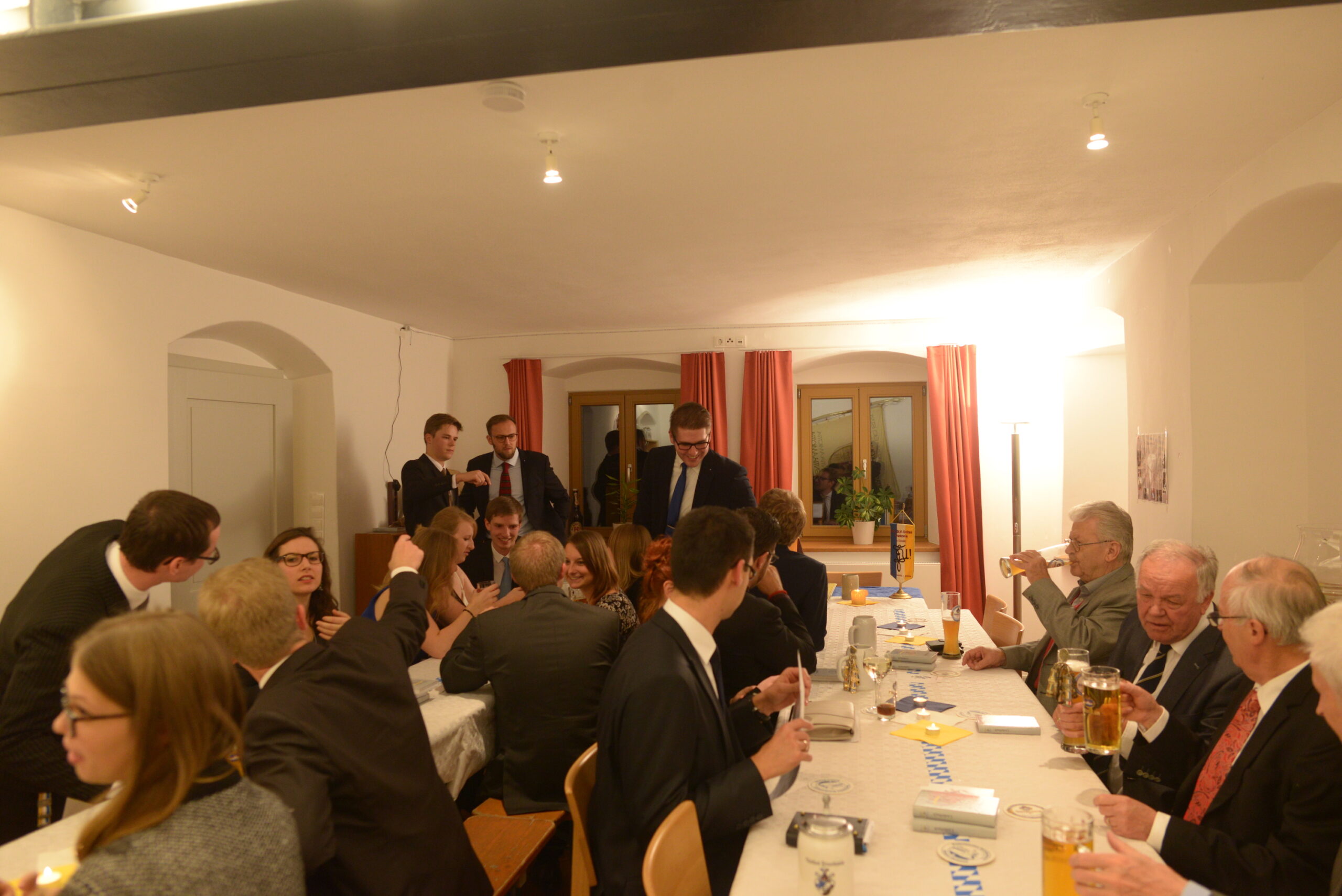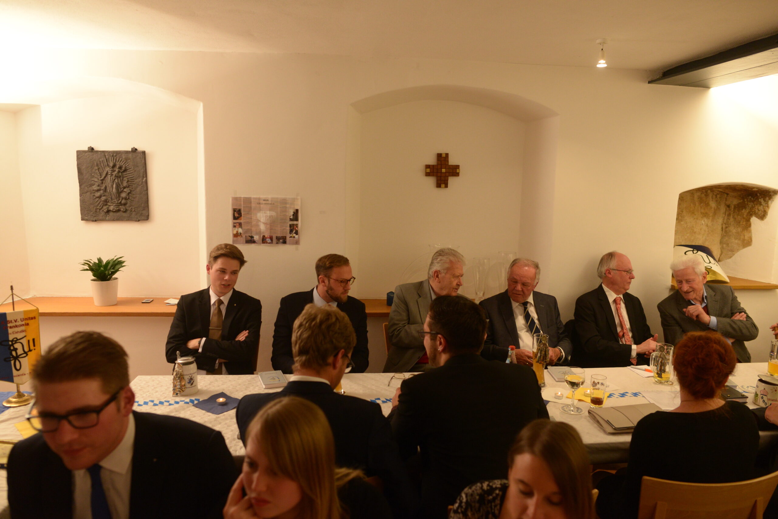 Besonders freute es die Aktivität viele frische Gesichter auf dem Haus willkommen heißen zu können. So fanden zahlreiche Bundesbrüder aus anderen Hochschulorten den Weg ins herbstkühle Altmühltal: Bbr. Peter Fröhlich v/o Orpheus von unserer Mutterverbindung aus München, Bbr. Mark Braun e. lb. W.K.St.V. Unitas Landshut zu Köln, der aufgrund seines Umzugs gleich noch den 1. Senior der Unitas Frankonia Bbr. AH Erwin Strich v/o Pollux vom AH-Zirkel Ingolstadt mitbrachte und Bbr. Simon Kleine v/o Maibock als Vertreter e. lb. Unitas Hohenstaufen zu Stuttgart.