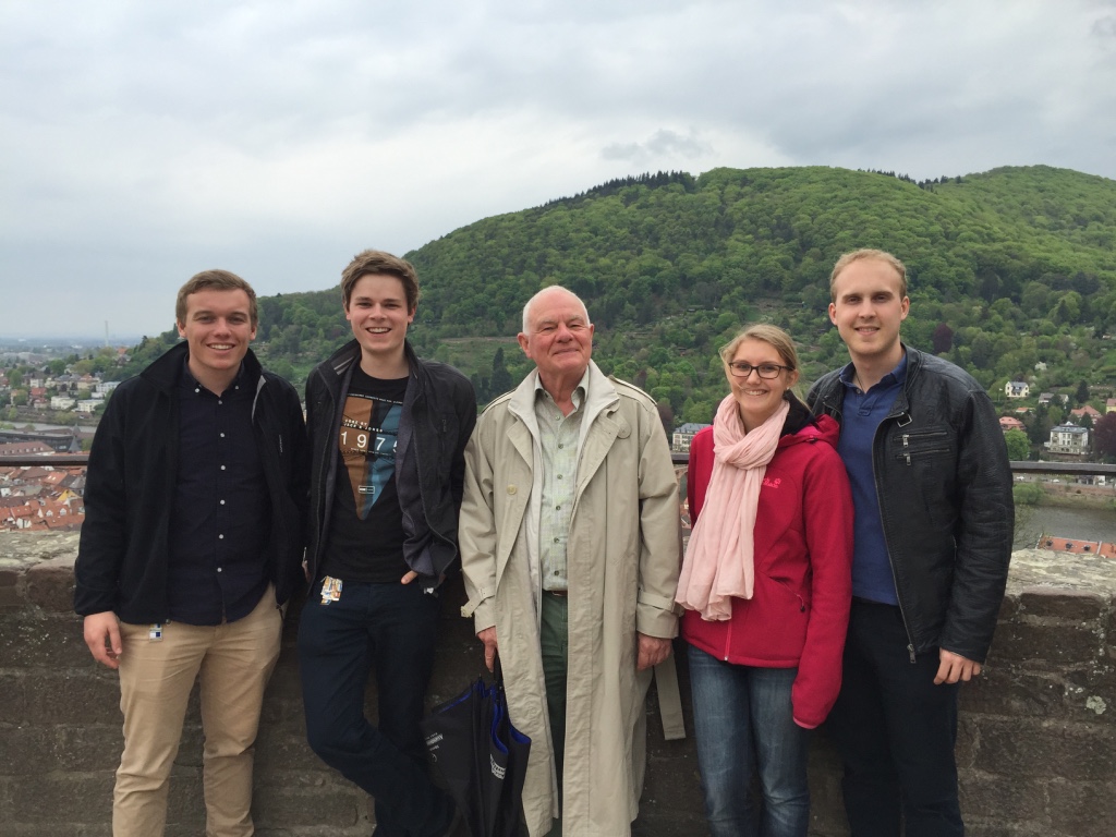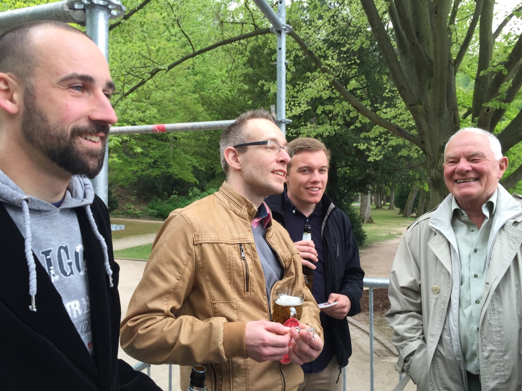 Im Anschluss trennte sich die Gruppe und manche von uns begaben sich mit der Bergbahn hoch auf das Heidelberger Schloss, von dem es einen grandiosen Ausblick auf die Dächer der 150.000-Einwohner-Stadt gab. Dort fand auf der sogenannten Scheffelterrasse ein Zipftausch zwischen zwei Eichstätter Bundesbrüdern statt, der vom bierehrlichen AH Bbr. Franz Hufnagl der Ruperto-Carolen dankenswerterweise geleitet wurde.