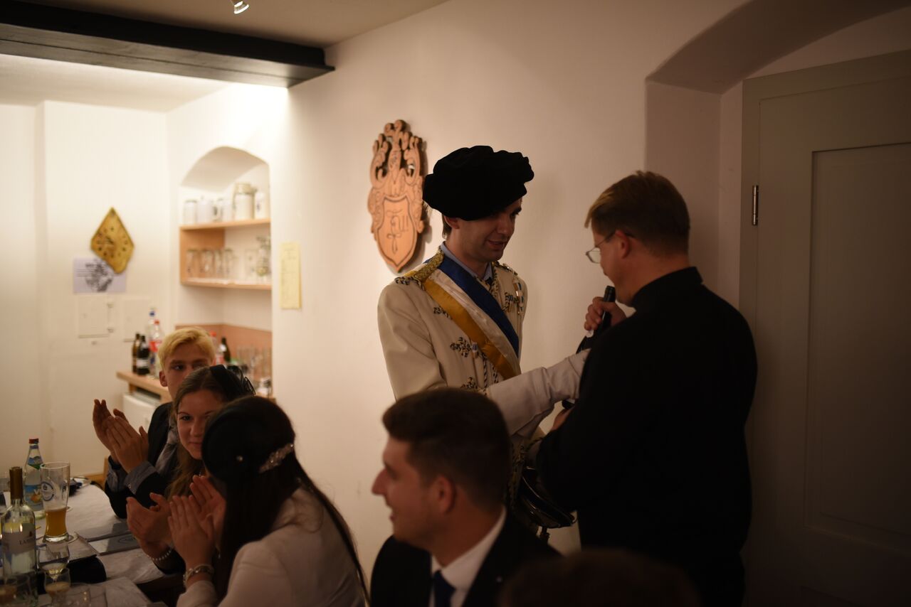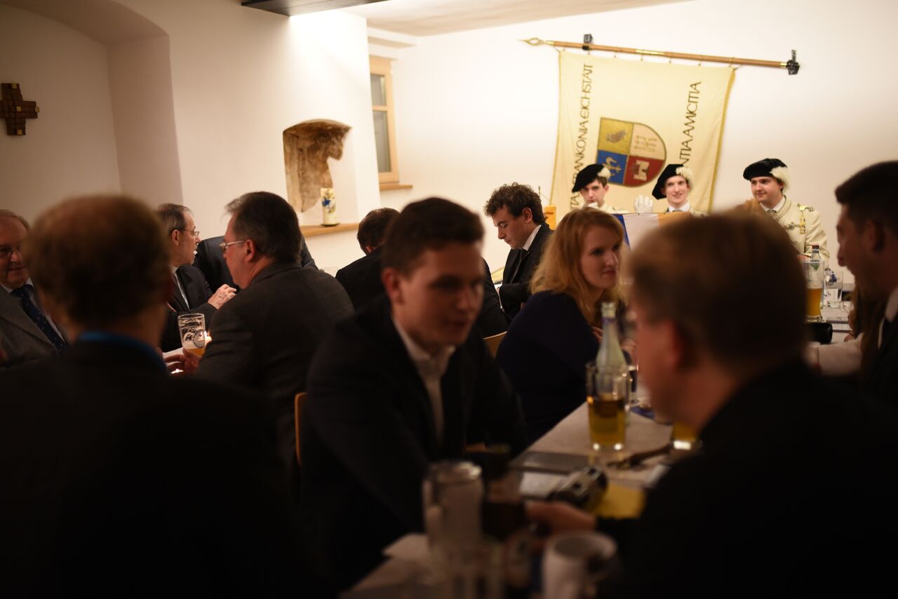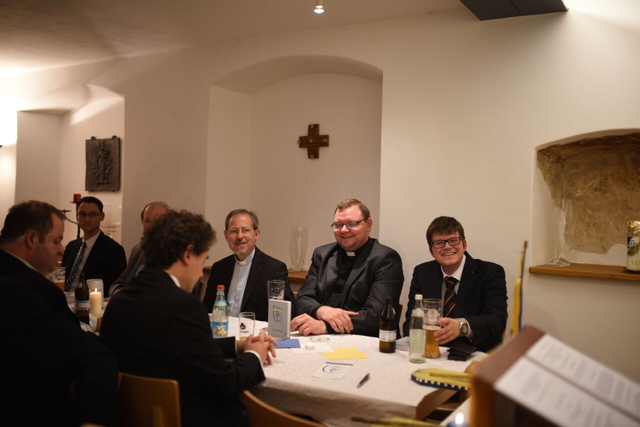 Infolge des Abschlusses von Hochofficium und Officium wurde für das leibliche Wohl aller Gäste gesorgt und selbstgemachte Pizzen serviert. Höchst erfreulich war zudem der Besuch der lieben Farbenbrüder Martin Schwerdt als Vertreter einer sehr verehrlichen K.A.V. SANCTOTTENSIS zu Heiligenkreuz im ÖCV und des hohen FM Otto Ziegler als Vertreter e.s.v. ALCIMONIA zu Eichstätt im CV. Die Feierlichkeiten dauerten in altstudentischer Manier bis tief in die Nacht hinein an!