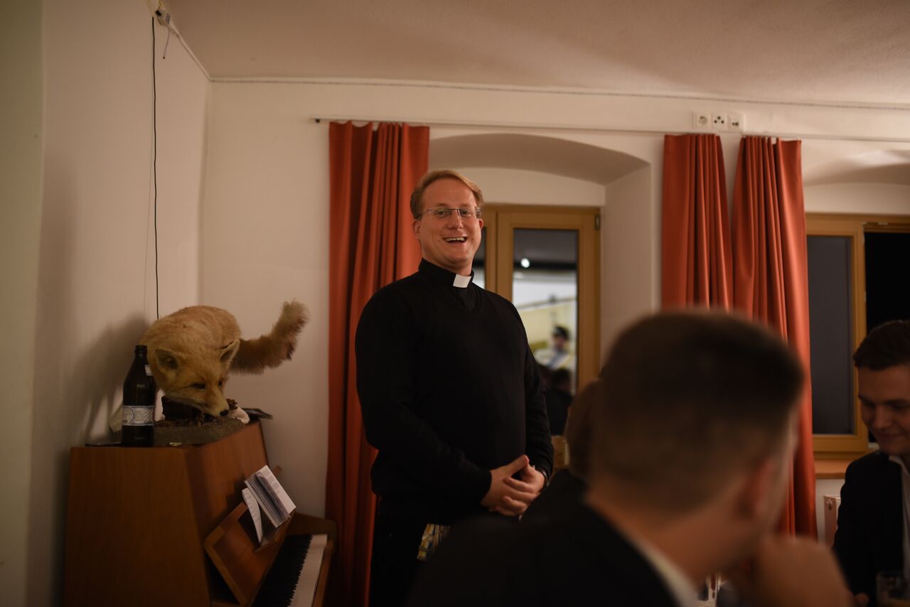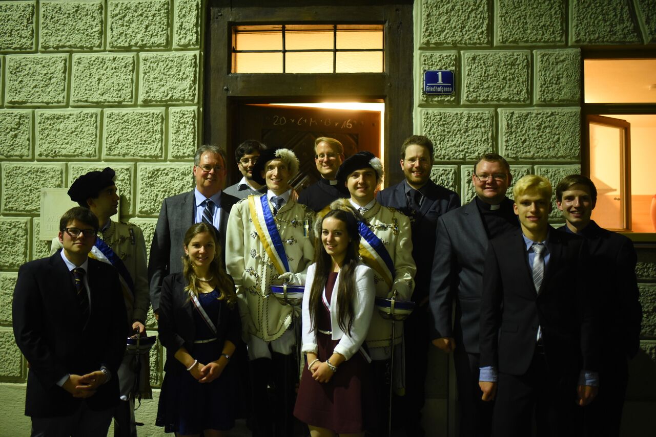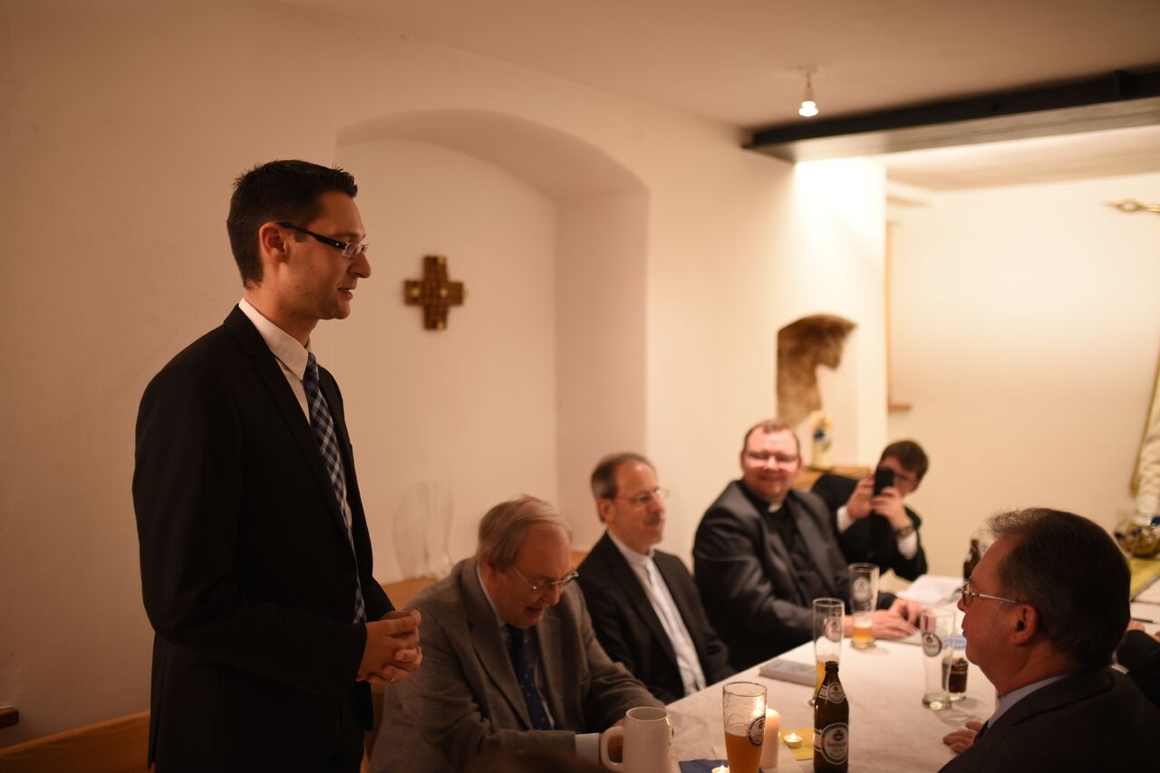 Infolge des Abschlusses von Hochofficium und Officium wurde für das leibliche Wohl aller Gäste gesorgt und selbstgemachte Pizzen serviert. Höchst erfreulich war zudem der Besuch der lieben Farbenbrüder Martin Schwerdt als Vertreter einer sehr verehrlichen K.A.V. SANCTOTTENSIS zu Heiligenkreuz im ÖCV und des hohen FM Otto Ziegler als Vertreter e.s.v. ALCIMONIA zu Eichstätt im CV. Die Feierlichkeiten dauerten in altstudentischer Manier bis tief in die Nacht hinein an!
