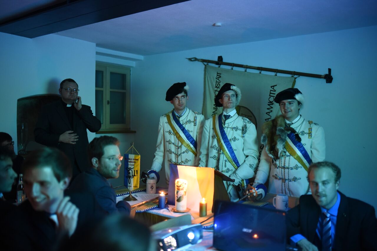Am vergangenen Freitag, den 21. Oktober 2016 um 20:30 Uhr schlug der hohe Senior (X) Thomas Laib v/o Rammbock zur hochoffiziellen Semesterincipitkneipe des Wissenschaftlich Katholischen Studentenvereins UNITAS FRANKONIA zu Eichstätt auf und eröffnete damit im feierlichen Rahmen das 113. Vereinssemester.