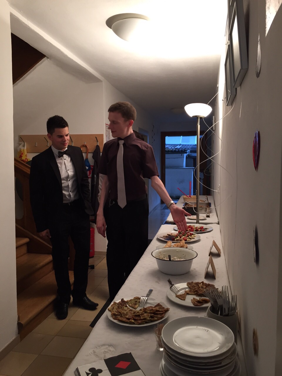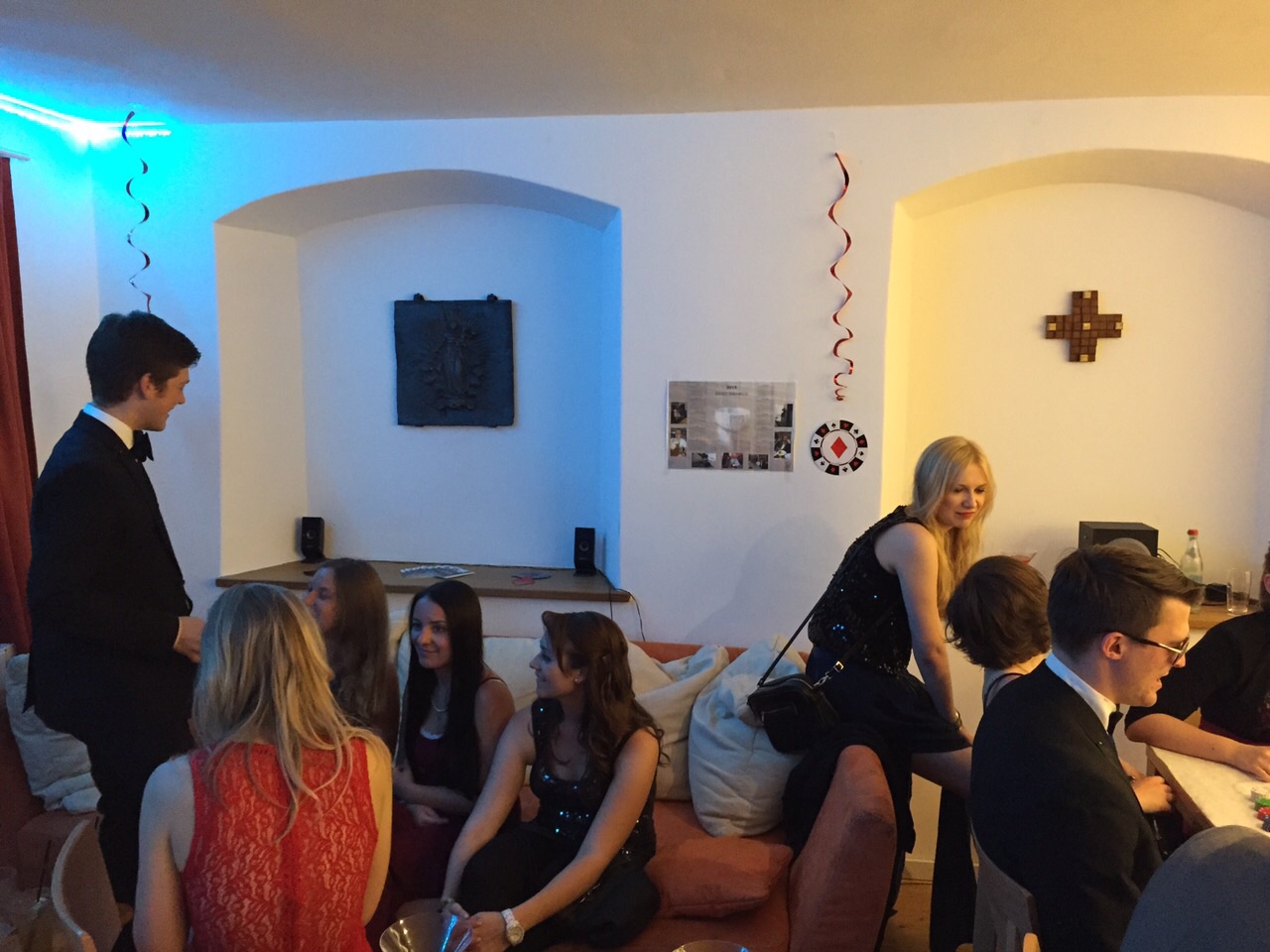 Es gibt in der sogenannten Fuxenfibel (dem Handbuch für alle couleurstudentischen Neueinsteiger) ein Kapitel, die die Etikette behandelt. Der Eichstätter UV nahm sich die Freiheit jene auf der Mottoparty-Premiere unter Beweis zu stellen, denn diese sollte das für gewöhnlich hohe Stil-Niveau noch einmal toppen.